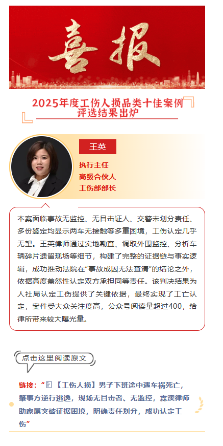 【律所动态】2025年度十佳案例公布——工伤人损品类
