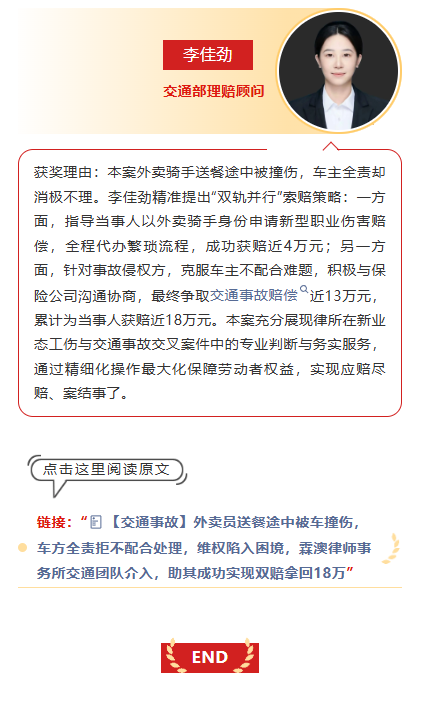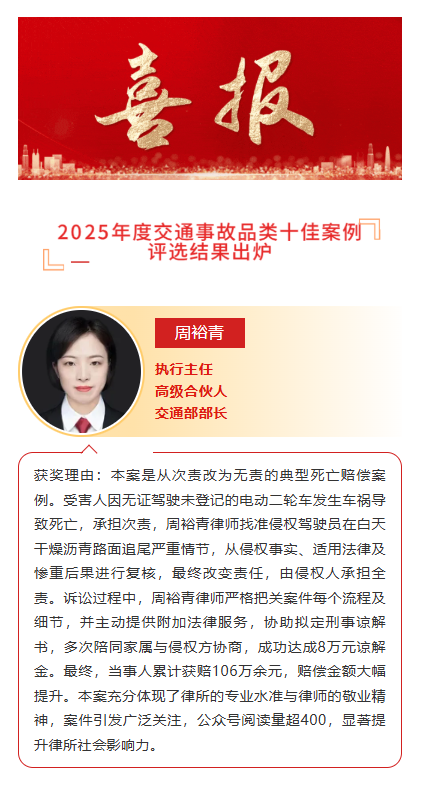 【律所动态】2025年度十佳案例公布——交通事故品类