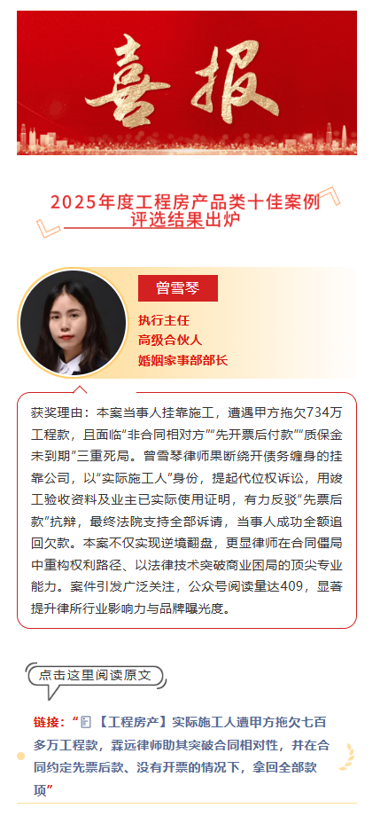 【律所动态】2025年度十佳案例公布——工程房产品类